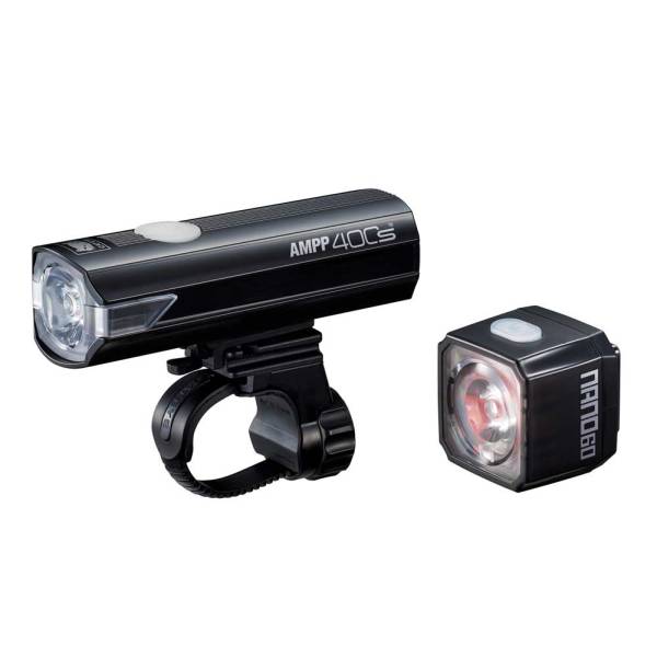 Sada lamp Cateye AMPP400S + Nano60 se skládá z jasného světlometu (400 lumenů) s dobrou viditelností jak dopředu, tak po stranách a kompaktního zadního světla (60 lumenů), které vás jasně zviditelňuje v provozu.