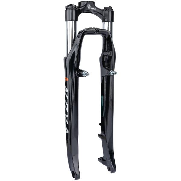 - Suspension rejse 60 mm, suspension olie på højre / stål fjeder på venstre låsbar, uden styrerør til 1" og 1 1/8", blank sort