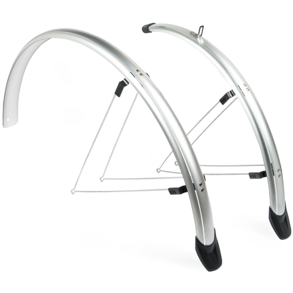 Dette skærmsæt kommer i en elegant sølvfarve, der ikke kun er funktionel, men også en stilfuld tilføjelse til din cykel. Uanset om du cykler gennem byen eller tager en tur på landet, vil disse skærme holde dig ren og tør. Sættet inkluderer både en for- og en bagskærm, så din cykel er fuldt beskyttet.