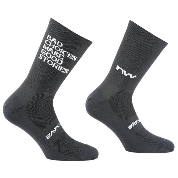 Die BAD CHOICES SOCK Radsocken von Northwave zeigen dir, dass die spontane Extrarunde oder das neue Fahrrad doch noch etwas nützen.