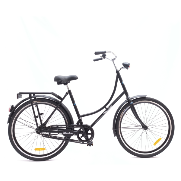 Classic Dutch comfort for growing riders. The Wheelerz Oma 26" keeps city rides simple and worry-free with a 1-speed coaster brake hub for intuitive back-pedal stopping, a sturdy steel build, and everyday kit that stands up to Dutch weather. The upright step-through frame is easy to mount, the oversized rear carrier hauls school bags, and LED lights plus spoke reflectors boost visibility after dark. Anti-puncture 26×1.75" tires and an industrial-bearing bottom bracket keep maintenance low and miles smooth.