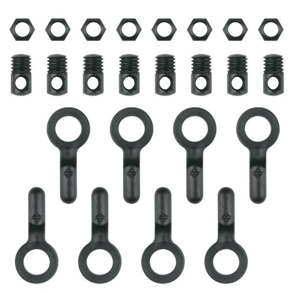 - Laajat tarvikkeet: Sarja sisältää 8 pulttia, mutteria ja jousitukisuojakappaletta kutakin, jotka ovat tarpeen täydelliseen asennukseen.
