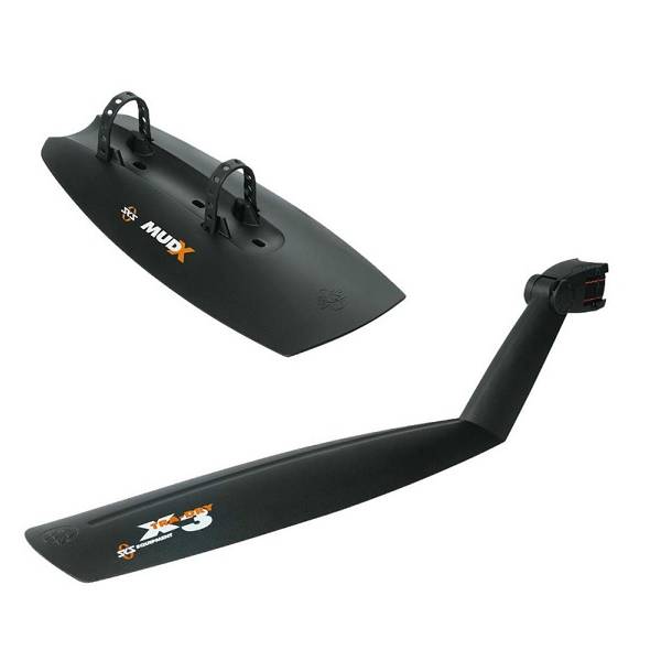 Pidä roiskeet loitolla ilman, että pyöräsi painaa liikaa. Tämä universaali setti yhdistää ikonisen X-TRA-DRY takasuoja ja kompaktin MUD-X etuosasuojan, jotka on valmistettu korkealaatuisesta, iskunkestävästä muovista. Takasuoja kiinnitetään mihin tahansa satulatolppaan sekunneissa ja sen kulmaa voi säätää pyörän ylle, kun taas etuosasuoja kiinnitetään alatuubiin joustavilla hihnoilla ja vaahtomuovipatjalla, joka suojaa runkoa. Täydellinen MTB-koville, täysjousitetuille pyörille ja vaihtelevaan maastoon sopiville työmatkapyöräilijöille, jotka haluavat nopeaa suojaa ja helppoa asennusta ja poistamista.