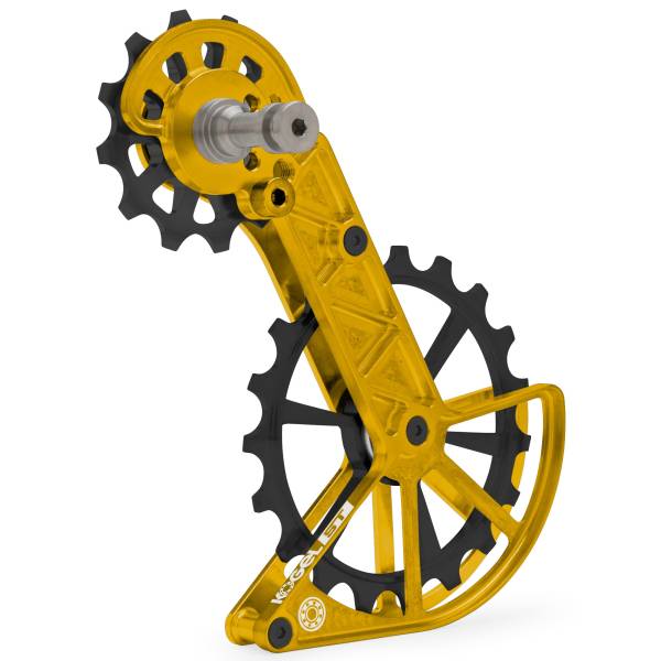 En remplaçant vos roues de dérailleur standard par une roue de dérailleur supérieure en céramique de 12 dents et une roue de dérailleur inférieure de 19 dents, toutes deux montées sur la cage la plus rigide disponible, vous pouvez réduire la friction, changer de vitesse plus précisément et améliorer la rétention de la chaîne.