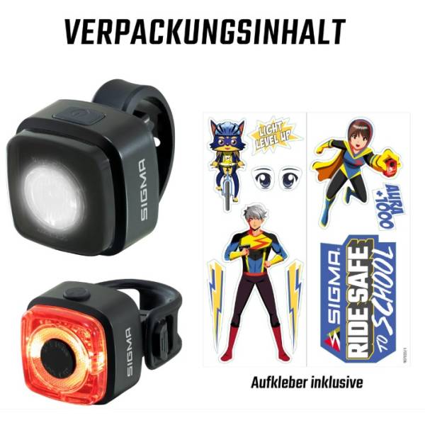 - Le set de lumières Sigma AURA MICRO / HIRO MICRO offre un éclairage avant de 30 lux et une sécurité compacte pour le cyclisme en famille