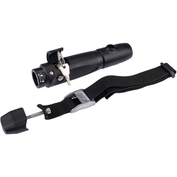 Contenu de la livraison : raccord de barre d'attelage avec serrure, pied et sangle de sécurité, vis de fixation.