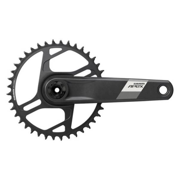 Le pédalier SRAM Apex 1 Wide est doté de bras de manivelle en aluminium, d'un axe DUB léger et rigide, et d'un plateau X-SYNC élégant et sécurisé en montage direct pour un contrôle de chaîne impeccable.