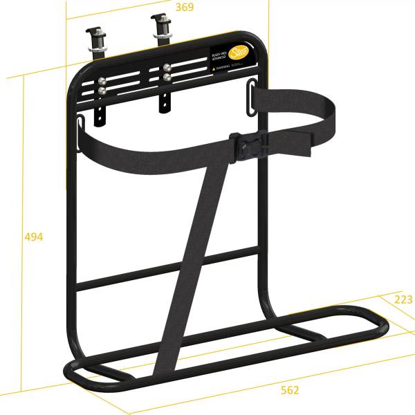 Il portabuggy è dotato di una robusta cinghia di tensione, così il passeggino rimane ben fissato.