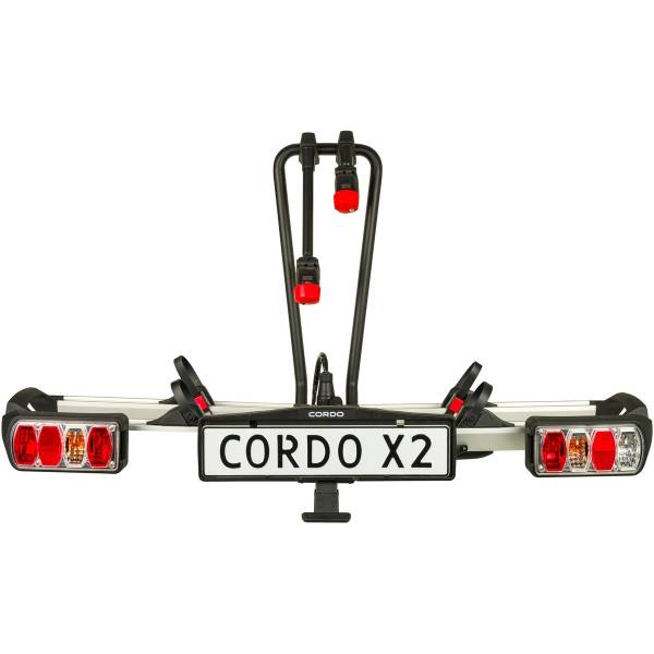 Il Cordo X2 viene fornito con una spina standard a 13 poli per l'illuminazione con lampadine. Il bloccaggio con chiave sul gancio di traino garantisce che il tuo portabici sia fissato in modo sicuro al gancio. Per ogni set di portabici riceverai 2 chiavi identiche sia per il gancio di traino che per il bloccaggio della manopola.