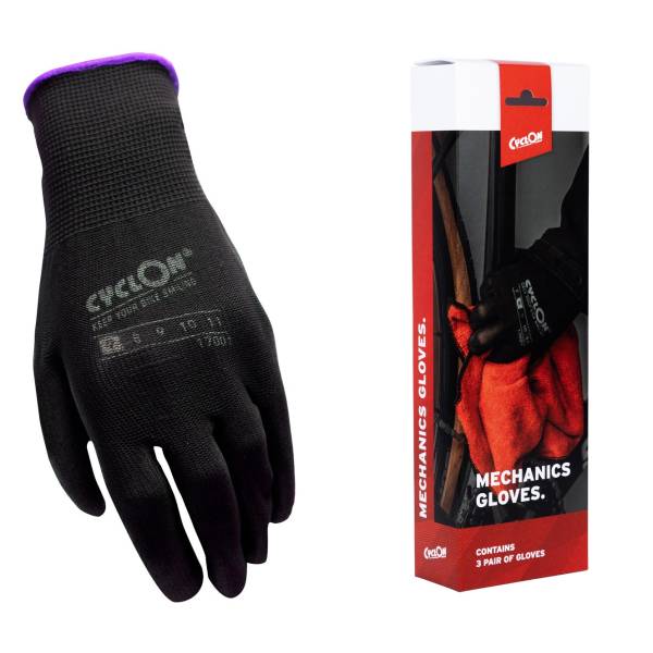 Le guanti da montaggio CyclOn sono progettati per proteggere e mantenere pulite le tue mani durante lavori intensivi sulla bicicletta. Grazie al rivestimento speciale sui guanti, puoi godere di una presa extra, permettendoti di lavorare con precisione. Inoltre, questi guanti sono riutilizzabili e facili da mantenere. Possono essere lavati in lavatrice per una pulizia rapida e semplice.