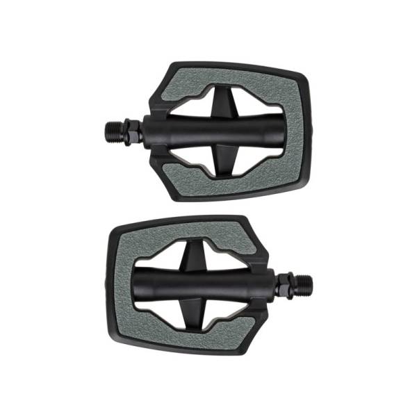 - 2コンポーネントペダル、黒のポリプロピレン、灰色のSandblockアンチスリップインサート、軽量ボールベアリング、ホウ素シャフト、承認済みのリフレクターを装備。