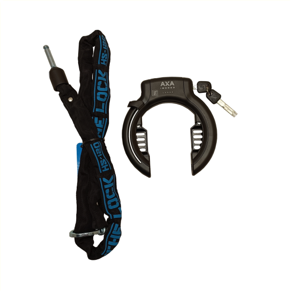 자전거 도난으로부터 보호하세요! AXA Imenso Large 링 잠금장치와 The Lock HS-120 인서트 체인의 고급 조합으로 안전을 확보하세요. 이 ART 2 인증 잠금 시스템은 최대의 안전성과 편리함을 제공합니다. 도시 자전거, 전기 자전거 및 박스 자전거에 이상적입니다.
