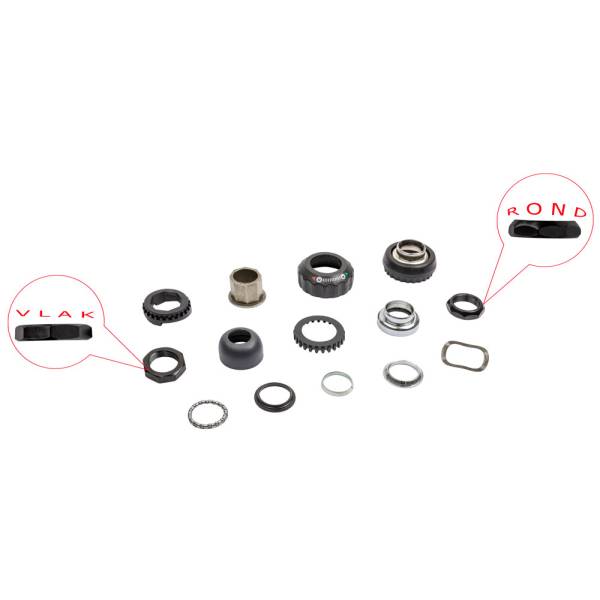 Dit is een compleet balhoofdstel: voorvorkring, lagering, bovencup, ondercup en stuurblokkering.