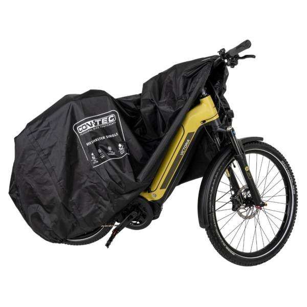 A Capa Bike.Shelter da CONTEC é feita de um material Oxford 300D com revestimento em PU, que é à prova d'água, resistente a rasgos e durável. Ela vem com uma Cinta de Fixação com fivela para proteção contra o vento. A capa para bicicleta também possui ilhoses extras para um cadeado, para que você possa proteger ainda mais sua bicicleta contra roubo.