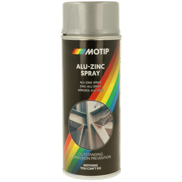 Spray de secagem rápida com boas propriedades de preenchimento e excelente aderência para tratar aço galvanizado e não tratado. A spray oferece uma excelente prevenção contra corrosão catódica, é soldável localmente e resistente a gasolina, produtos químicos e intempéries. A spray MOTIP é resistente ao calor até 250 ºC.