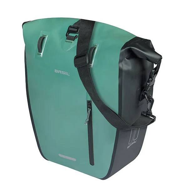 A bolsa de bicicleta Basil Rivo L é uma bolsa esportiva e impermeável de 25–31 litros com MIK Hooks. Ideal para diversas pedaladas e fácil de fixar na sua bicicleta (elétrica)!