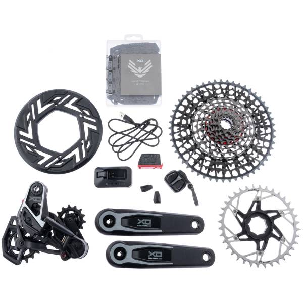 - Format din: Derailleur spate, POD DE reglare Ultimate (de asemenea, cu butoane convexe), marginea lanțului, caseta XG-1295 10-52 dinți, lanț X0 Eagle transmisie, baterie, încărcător cu cablu, polar închis