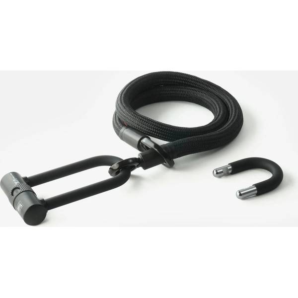 Он доступен в различных комплектах с U-образным замком и текстильным кабелем по вашему выбору.