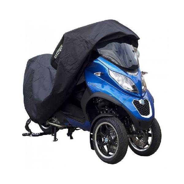 ALFA 3W 摩托车罩专为所谓的三轮摩托车设计,适用于前面有两个轮子的车型,如 Piaggio MP3 或 Gilera Fuoco。与许多其他罩子不同,这款罩子在前面特别宽大,适合配备顶箱的摩托车。